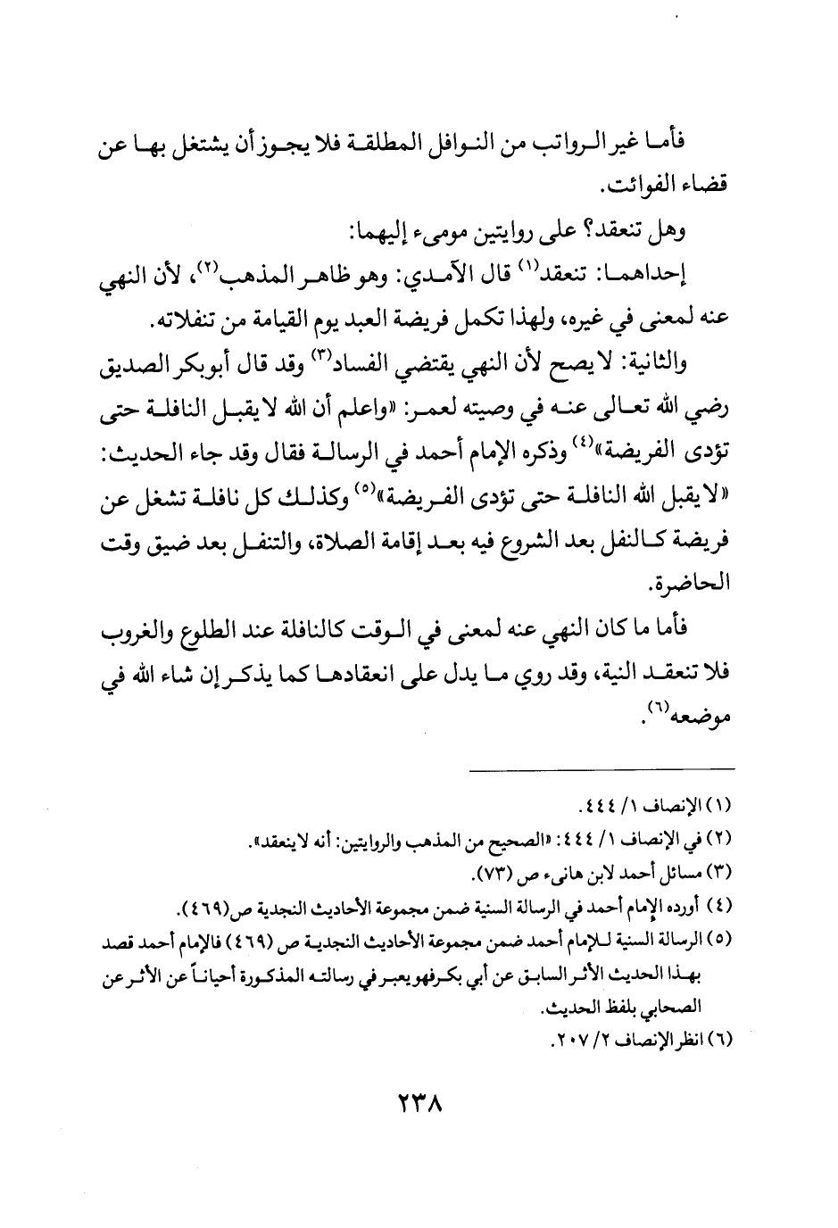 والثانية: لا يصح لأن النهي يقتضي الفساد وقد قال أبو بكر الصديق رضي الله تعالى عنه في وصيته لعمر واعلم أن الله لا يقبل النافلة حتى تؤدى الفريضة وذكره الإمام أحمد في الرسالة فقال وقد جاء الحديث لا يقبل الله النافلة حتى تؤدى الفريضة وكذلك كل نافلة تشغل عن فريضة كالنفل بعد الشروع فيه بعد إقامة الصلاة والتنفل بعد ضيق وقت الحاضرة.