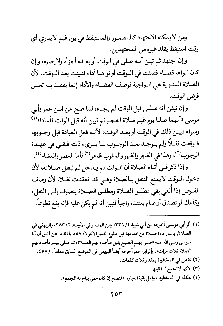وسواء تبين ذلك في الوقت أو بعد الوقت لأنه فعل العبادة قبل وجوبها فوقعت نفلا ولم يوجد بعد الوجوب ما يبرىء ذمته فبقي في عهده الوجوب وهذا في الفجر والظهر والمغرب ظاهر فأما العصر والعشاء.