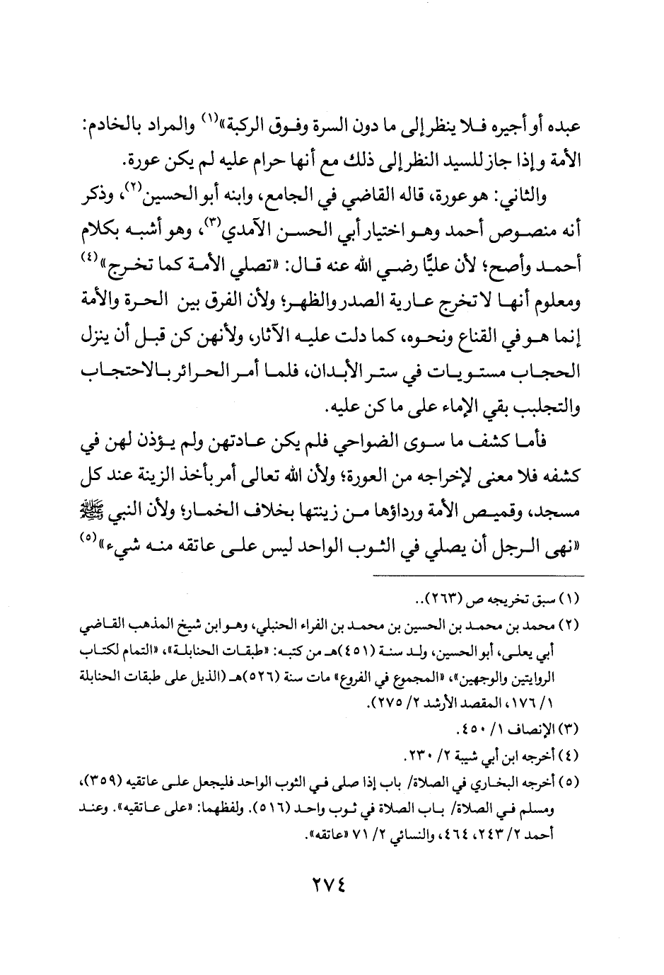 فأما كشف ما سوى الضواحي فلم يكن عادتهن ولم يأذن لهن في كشفه فلا معنى لإخراجه من العورة ولأن الله تعالى أمر بأخذ الزينة عند كل مسجد وقميص الأمة ورداؤها من زينتها بخلاف الخمار ولأن النبي صلى الله عليه وسلم: "نهى الرجل أن يصلي في الثوب الواحد ليس على عاتقه منه شيء".