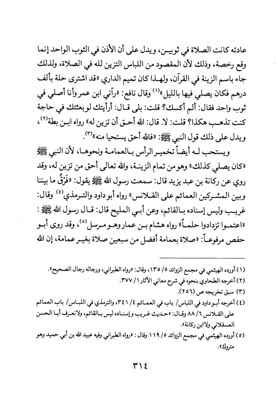 عادته كانت الصلاة في ثوبين ويدل على أن الإذن في الثوب الواحد إنما وقع رخصة وذلك لأن المقصود من اللباس التزين لله في الصلاة ولذلك جاء باسم الزينة في القران ولهذا كان تميم الداري قد اشترى حلة بألف درهم فكان يصلي فيها بالليل وقال نافع: "راني ابن عمر وإنا اصلي في ثوب واحد فقال ألم اكسك قلت بلى قال ارأيتك لو بعثتك في حاجة كنت تذهب هكذا قلت لا قال الله أحق أن تزين له" رواه ابن بطة ويدل على ذلك قول النبي صلى الله عليه وسلم: "فالله أحق إستحياء منه.