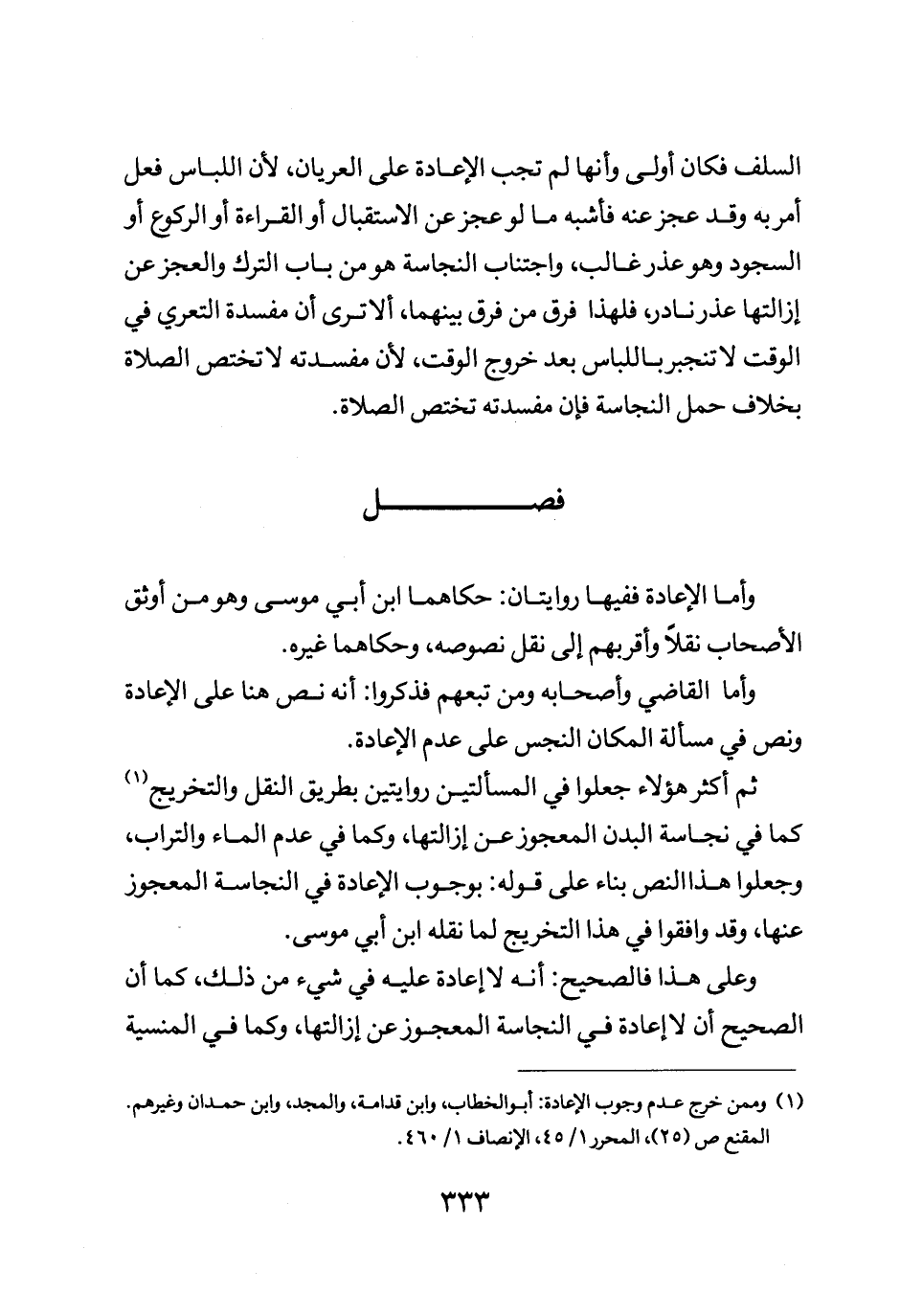 وأما الإعادة ففيها روايتان حكاهما ابن أبي موسى وهو من أوثق الأصحاب نقلا وأقربهم إلى نقل نصوصه وحكاهما غيره.