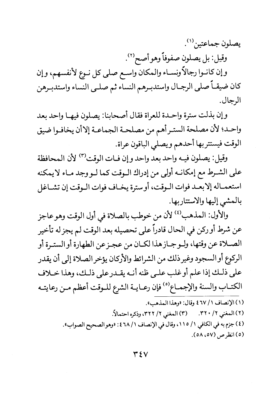 والأول مذهب لأن من خوطب بالصلاة في أول الوقت وهو عاجز عن شرط أو ركن في الحال قادرا على تحصيله بعد الوقت لم يجز له تأخير الصلاة عن وقتها ولو جاز هذا لكان من عجز عن الطهارة أو السترة أو الركوع أو السجود وغير ذلك من الشرائط والأركان يؤخر الصلاة إلى أن يقدر على ذلك إذا علم أو غلب على ظنه أنه يقدر على ذلك وهذا خلاف الكتاب والسنة والإجماع فإن رعاية الشرع للوقت أعظم من رعايته