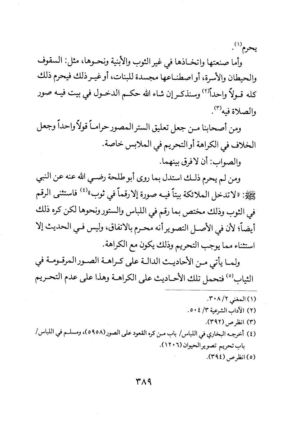 ومن لم يحرم ذلك استدل بما روى أبو طلحة رضي الله عنه عن النبي صلى الله عليه وسلم: "لا تدخل الملائكة بيتا فيه صورة إلا رقما في ثوب" فاستثنى الرقم في الثوب وذلك مختص بما رقم في اللباس والستور ونحوها لكن كره ذلك أيضا لأن في الأصل التصوير أنه محرم بالتفاق وليس في الحديث إلا استثناء ما يوجب التحريم وذلك يكون مع الكراهة.