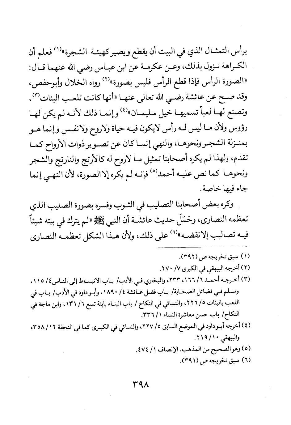برأس التمثال الذي في البيت أن يقطع ويصير كهيئة الشجرة" فعلم أن الكراهة تزول بذلك وعن عكرمة عن ابن عباس رضي الله عنهما قال الصورة الرأس فإذا قطع الرأس فليس بصورة" رواه الخلال وأبو حفص وقد صح عن عائشة رضي الله تعالى عنها أنها كانت تلعب البنات وتصنع لها لعبا تسميها خيل سليمان وإنما ذلك لأنه لم يكن لها رؤس ولأن ما ليس له رأس لا يكون فيه حياة ولا روح ولا نفس وإنما هو بمنزلة الشجر ونحوها والنهي إنما كان عن تصوير ذوات الأرواح كما تقدم ولهذا لم يكره أصحابنا تمثيل ما لا روح له كالارتج والنارتج والشجر ونحوها كما نص عليه أحمد فإنه لم يكره إلا الصورة لأن النهي إنما جاء فيها خاصة.
