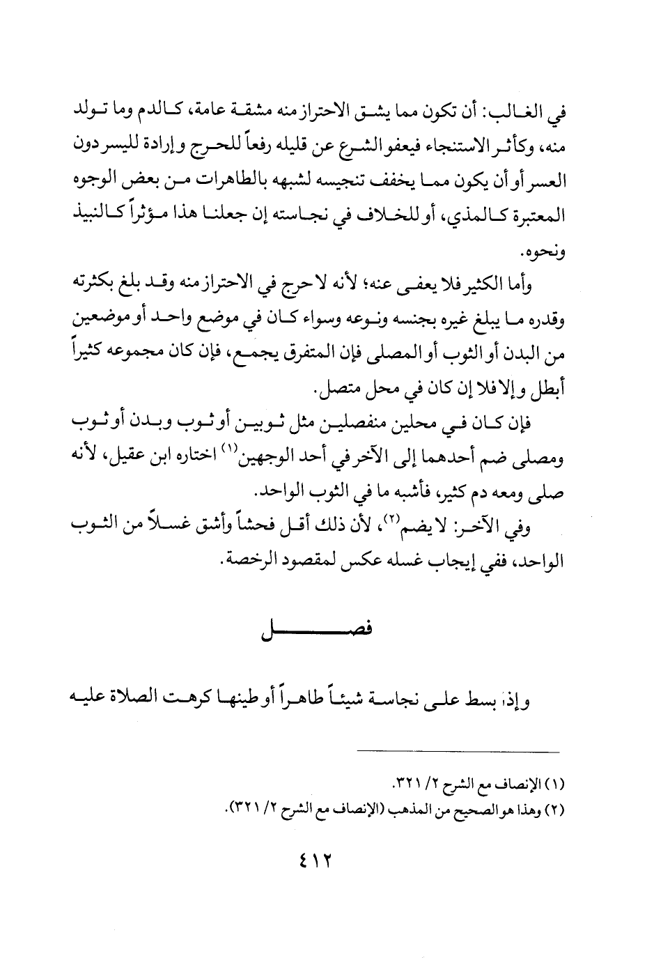 وأما الكثير فلا يعفى عنه لأنه لا حرج في الاحتراز منه وقد بلغ بكثرته وقدره ما يبلغ غيره بجنسه ونوعه وسواء كان في موضع واحد أو موضعين من البدن أو الثوب أو المصلى فإن المفترق يجمع فإن كان مجموعه كثيرا ابطل والا فلا أن كان في محل متصل.