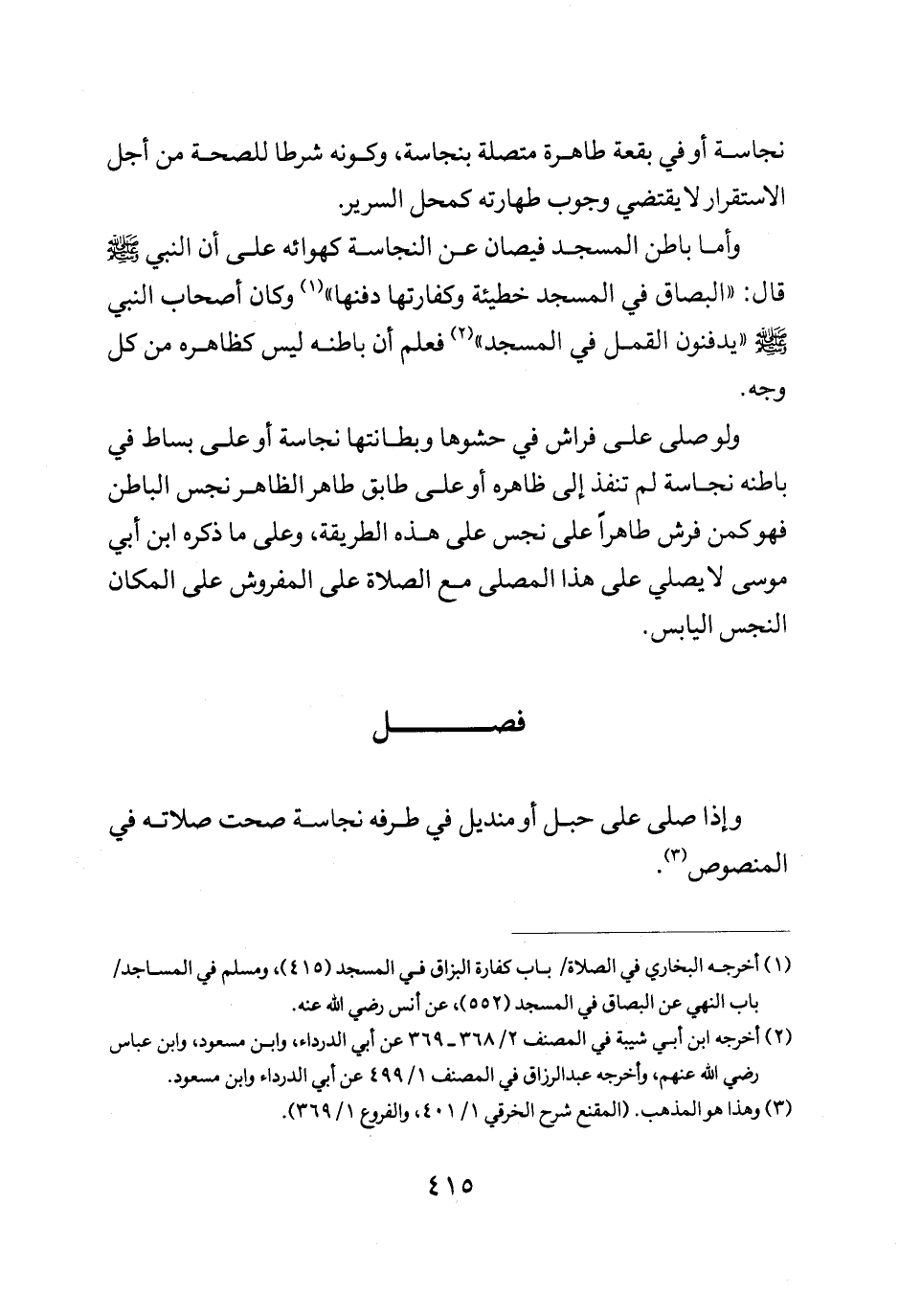 وأما باطن المسجد فيصان عن النجاسة كهوائه على أن النبي صلى الله عليه وسلم قال: "البصاق في المسجد خطيئة وكفارتها دفنها" وكان أصحاب النبي يدفنون القمل في المسجد فعلم أن باطنه ليس كظاهره من كل وجه.