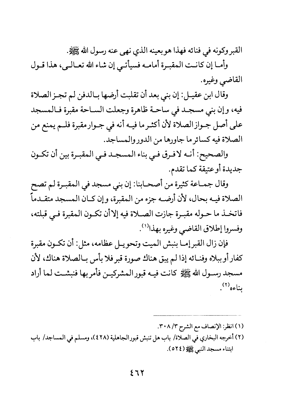 وقال ابن عقيل أن بني بعد أن تقلبت ارضها بالدفن لم تجز الصلاة فيه وأن بني مسجد في ساحة ظاهرة وجعلت الساحة مقبرة فالمسجد على أصل جواز الصلاة لان أكثر ما فيه أنه في جوار مقبرة فلم يمنع من الصلاة فيه كسائر ما جاورها من الدور والمساجد.