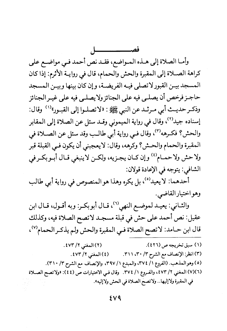 وأما الصلاة إلى هذه المواضع فقد نص أحمد في مواضع على كراهة الصلاة إلى المقبرة والحش والحمام قال في رواية الأثرم إذا كان المسجد بين القبور لا تصلى فيه الفريضة وأن كان بينها وبين المسجد حاجز فرخص أن يصلى فيه على الجنائز ولا يصلى فيه على غير الجنائز وذكر حديث أبي مرثد عن النبي صلى الله عليه وسلم لا تصلوا إلى القبور وقال اسناده جيد وقال في رواية الميموني وقد سئل عن الصلاة إلى المقابر والحش فكرهه وقال في رواية أبي طالب وقد سئل عن الصلاة في المقبرة والحمام والحش وكرهه وقال لا يعجبني أن يكون في القبلة قبر ولا حش ولا حمام وأن كان يجزيه ولكن لا ينبغي قال أبو بكر في الشافي يتوجه من الإعادة قولان.