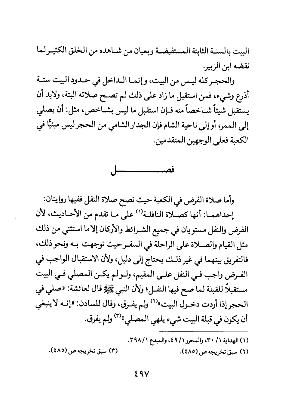والحجر كله ليس من البيت وإنما الداخل في حدود البيت ستة اذرع وشيء فمن استقبل ما زاد على ذلك لم تصح صلاته البتة ولا بد أن يستقبل شيئا شاخصا منه فإن استقيل ما ليس بشاخص مثل أن يصلي إلى الممر أو إلى ناحية الشام فإن الجدار الشامي من الحجر ليس مبنيا في الكعبة فعلى الوجهين المتقدمين.