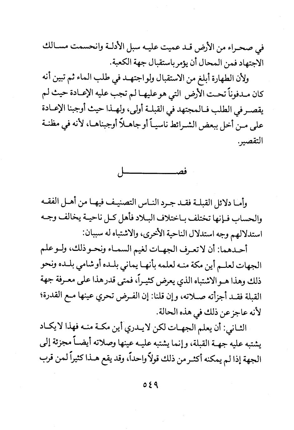 في صحراء من الأرض قد عميت عليه سبل الأدلة وانحسمت مسالك الاجتهاد فمن المحال أن يؤمر باستقبال جهة الكعبة.