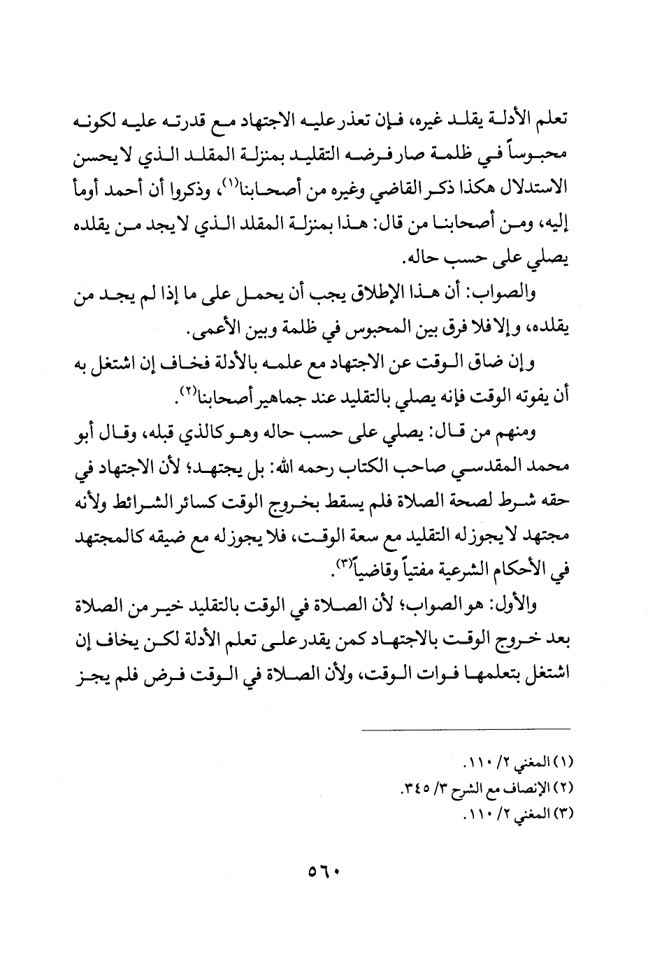 تعلم الأدلة يقلد غيره فإن تعذر عليه الاجتهاد مع قدرته عليه لكونه محبوسا في ظلمة صار فرضه التقليد بمنزلة المقلد الذي لا يحسن الاستدلال هكذا ذكر القاضي وغيره من أصحابنا وذكروا أن أحمد اوما إليه ومن أصحابنا من قال هذا بمنزلة المقلد الذي لا يجد من يقلده يصلي على حسب حاله.