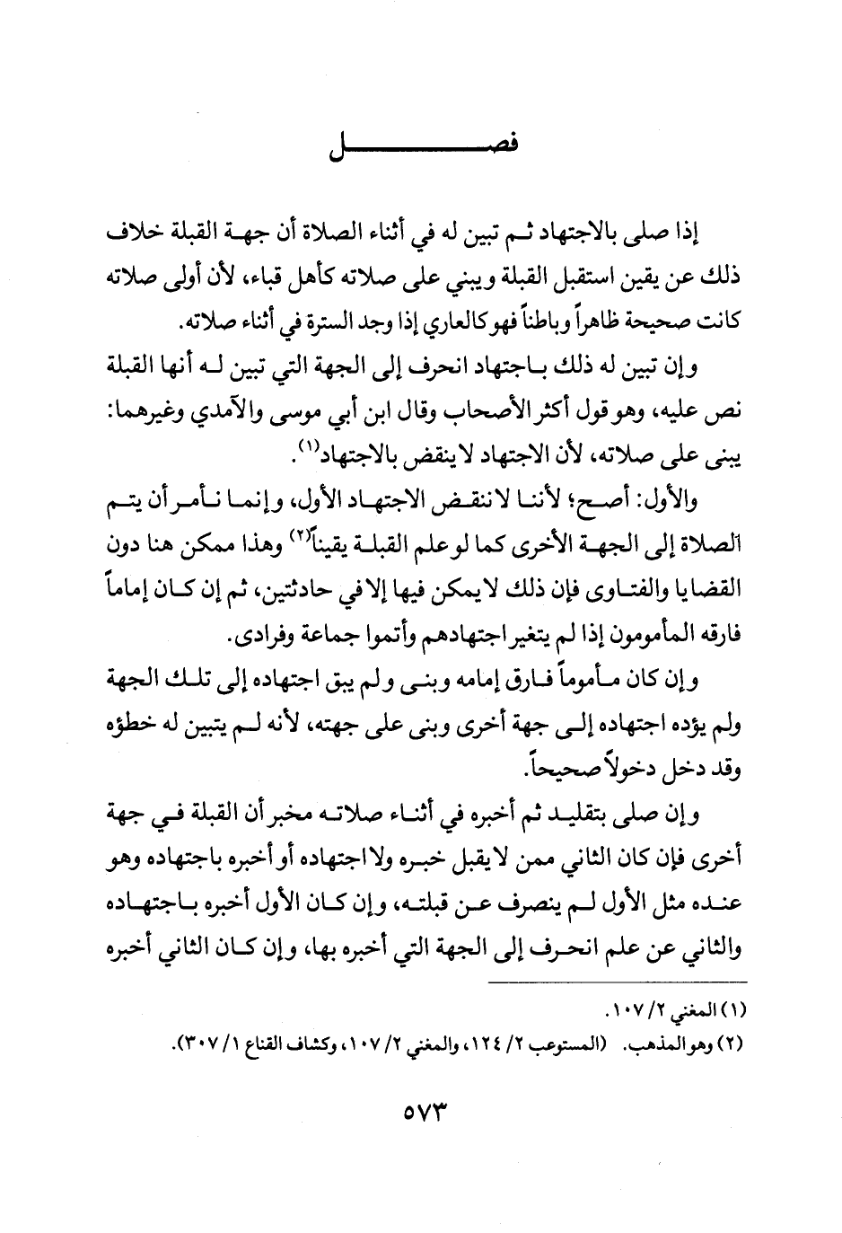 والأول أصح لاننا لا ننقض الاجتهاد الأول وإنما نامر أن يتم الصلاة إلى الجهة الأخرى كما لو علم القبلة يقينا وهذا ممكن هنا دون القضايا والفتاوى فإن ذلك لا يمكن فيها إلا في حادثتين ثم أن كان امام فارقه المامومون إذا لم يتغير اجتهادهم واتموا جماعة وفرادى.
