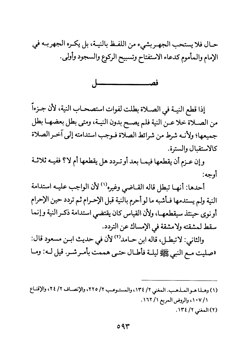 والثاني: لا تبطل قاله ابن حامد لأن في حديث ابن مسعود قال: "صليت مع النبي صلى الله عليه وسلم ليلة فأطال حتى هممت بأمر شر قيل له: وما