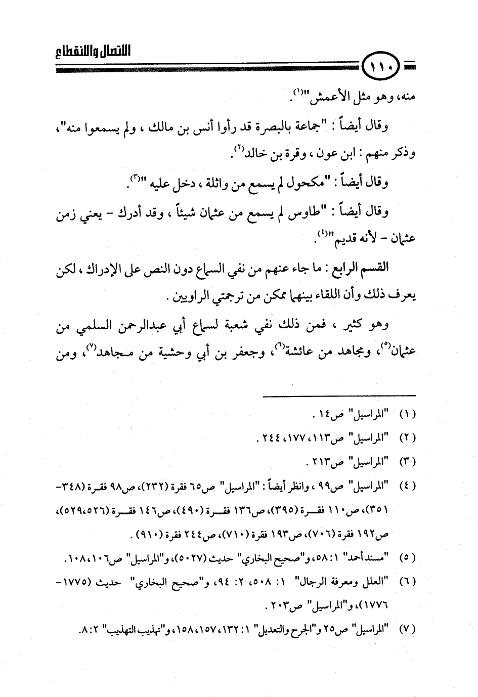 (¬٤). "المراسيل" ص ٩٩، وانظر أيضاً: "المراسيل" ص ٦٥ فقرة (٢٣٢)، ص ٩٨ فقرة (٣٤٨ - ٣٥١)، ص ١١٠ فقرة (٣٩٥)، ص ١٣٦ فقرة (٤٩٠)، ص ١٤٦ فقرة (٥٢٦، ٥٢٩)، ص ١٩٢ فقرة (٧٠٦)، ص ١٩٣ فقرة (٧١٠)، ص ٢٤٤ فقرة (٩١٠).