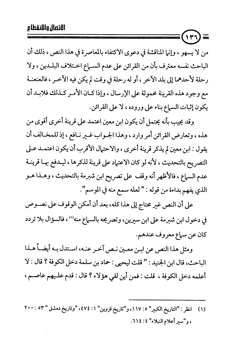 وقد يجيب بأنه يحتمل أن يكون ابن معين اعتمد على قرينة أخرى أقوى من هذه، وتعارض القرائن أمر وارد، وهذا الجواب غير نافع، إذ للمخالف أن يقول: ابن معين لم يذكر قرينة أخرى، والاحتمال الأقرب أن يكون اعتمد على التصريح بالتحديث، لأنه لو كان الاعتماد على قرينة لذكرها، ليدفع بها قرينة عدم السماع، فالأظهر أنه وقف على تصريح ابن شبرمة بالتحديث، وهذا هو الذي يفهم بداءة من قوله: " لعله سمع منه في الموسم".