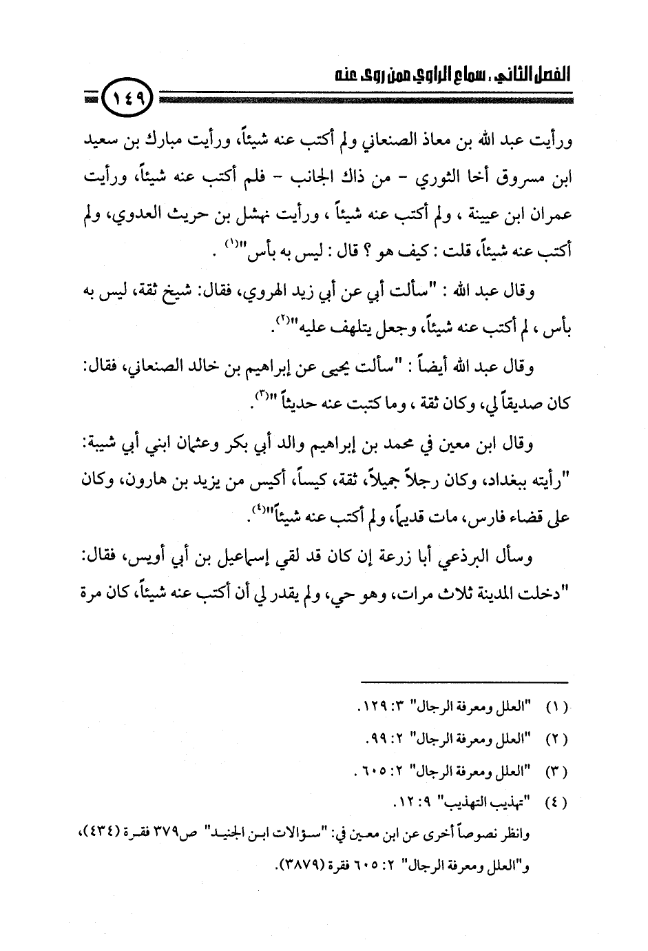 (¬١). "العلل ومعرفة الرجال" ٣: ١٢٩.