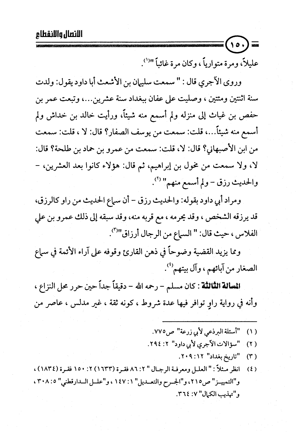 المسألة الثالثة: كان مسلم - رحمه الله - دقيقاً جداً حين حرر محل النزاع، وأنه في رواية راوٍ توافر فيها عدة شروط، كونه ثقة، غير مدلس، عاصر من