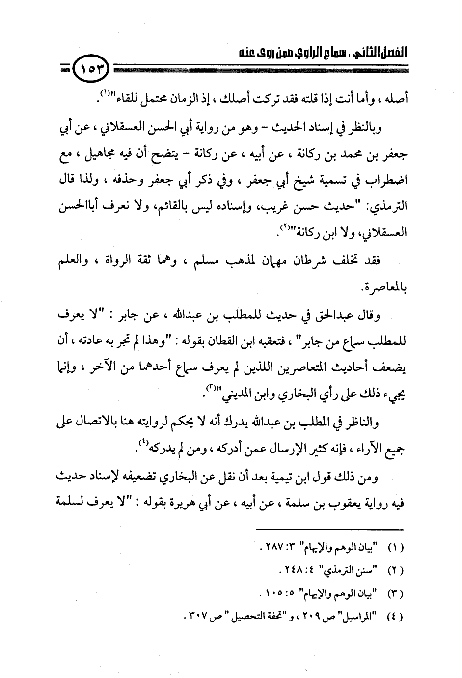 والناظر في المطلب بن عبدالله يدرك أنه لا يحكم لروايته هنا بالاتصال على جميع الآراء، فإنه كثير الإرسال عمن أدركه، ومن لم يدركه (¬٤).