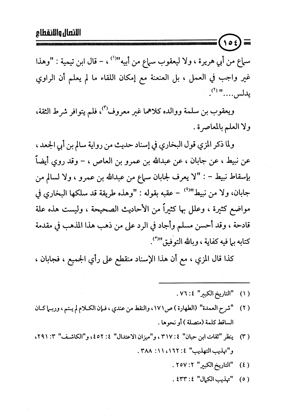 ولما ذكر المزي قول البخاري في إسناد حديث من رواية سالم بن أبي الجعد، عن نبيط، عن جابان، عن عبدالله بن عمرو بن العاص، - وقد روي أيضاً بإسقاط نبيط -: "لا يعرف لجابان سماع من عبدالله بن عمرو، ولا لسالم من جابان، ولا من نبيط" (¬٤) - عقبه بقوله: "وهذه طريقة قد سلكها البخاري في مواضع كثيرة، وعلل بها كثيراً من الأحاديث الصحيحة، وليست هذه علة قادحة، وقد أحسن مسلم وأجاد في الرد على من ذهب هذا المذهب في مقدمة كتابه بما فيه كفاية، وبالله التوفيق" (¬٥).