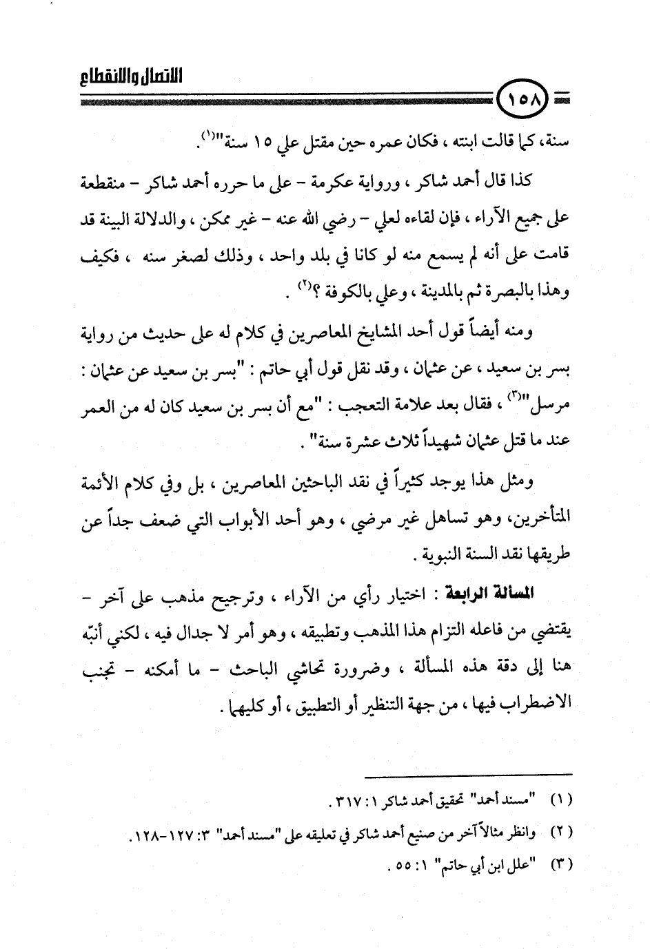 (¬٢). وانظر مثالاً آخر من صنيع أحمد شاكر في تعليقه على "مسند أحمد" ٣: ١٢٧ - ١٢٨.