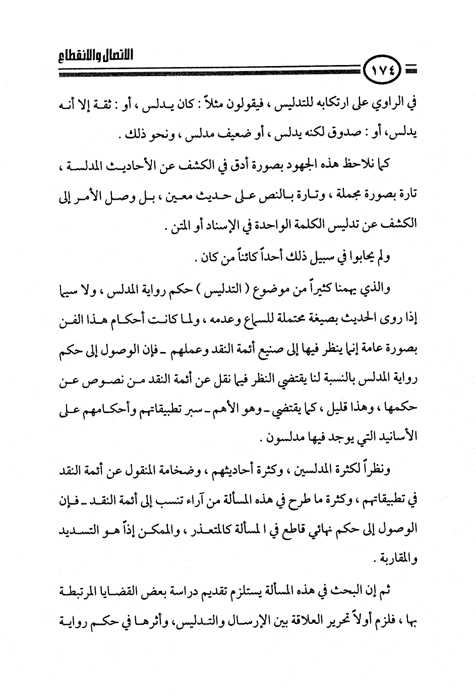 ونظراً لكثرة المدلسين، وكثرة أحاديثهم، وضخامة المنقول عن أئمة النقد في تطبيقاتهم، وكثرة ما طرح في هذه المسألة من آراء تنسب إلى أئمة النقد ـ فإن الوصول إلى حكم نهائي قاطع في المسألة كالمتعذر، والممكن إذاً هو التسديد والمقاربة.