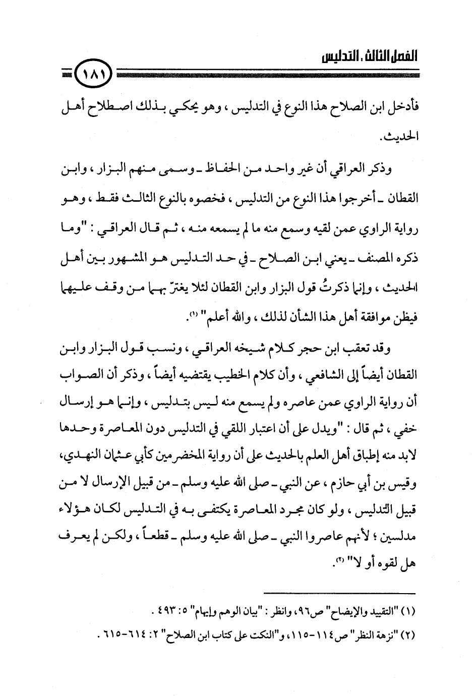 (¬٢) "نزهة النظر" ص ١١٤ - ١١٥، و"النكت على كتاب ابن الصلاح" ٢: ٦١٤ - ٦١٥.