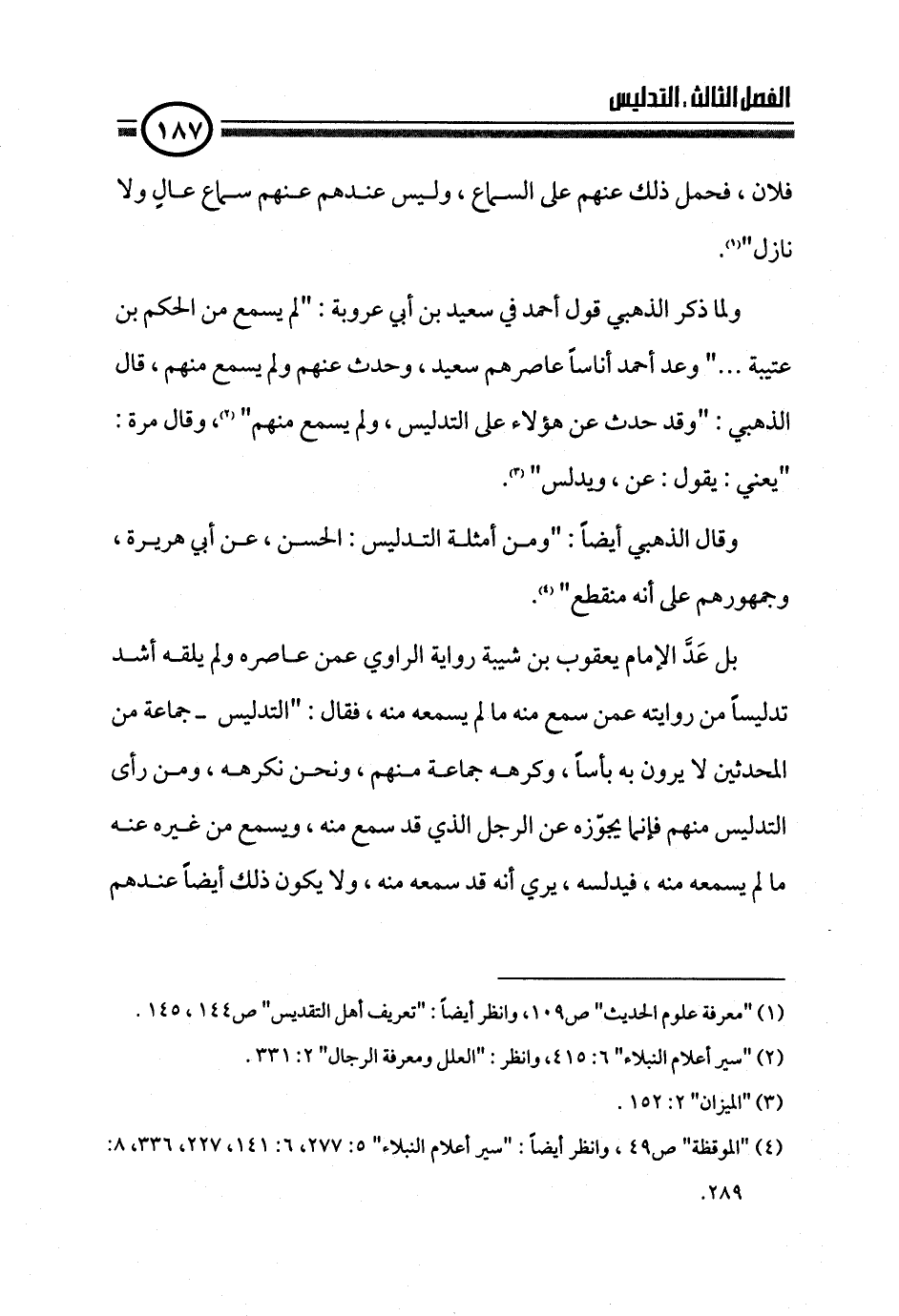 (¬١) "معرفة علوم الحديث" ص ١٠٩، وانظر أيضاً: "تعريف أهل التقديس" ص ١٤٤، ١٤٥.
