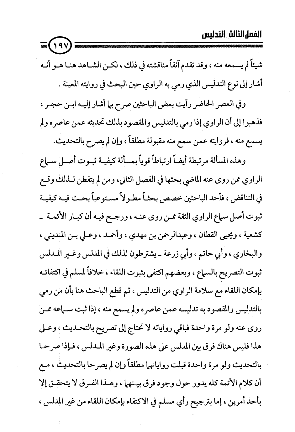 شيئاً لم يسمعه منه، وقد تقدم آنفاً مناقشته في ذلك، لكن الشاهد هنا هو أنه أشار إلى نوع التدليس الذي رمي به الراوي حين البحث في روايته المعينة.