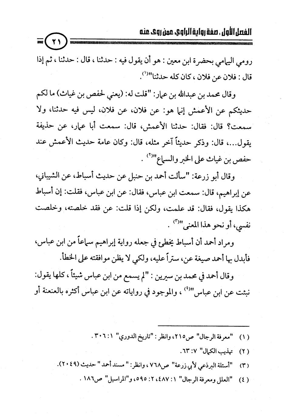 وقال أبو زرعة: "سألت أحمد بن حنبل عن حديث أسباط، عن الشيباني، عن إبراهيم، قال: سمعت ابن عباس، فقال: عن ابن عباس، فقلت: إن أسباط هكذا يقول، فقال: قد علمت، ولكن إذا قلت: عن فقد خلصته، وخلصت نفسي، أو نحو هذا المعنى" (¬٣).