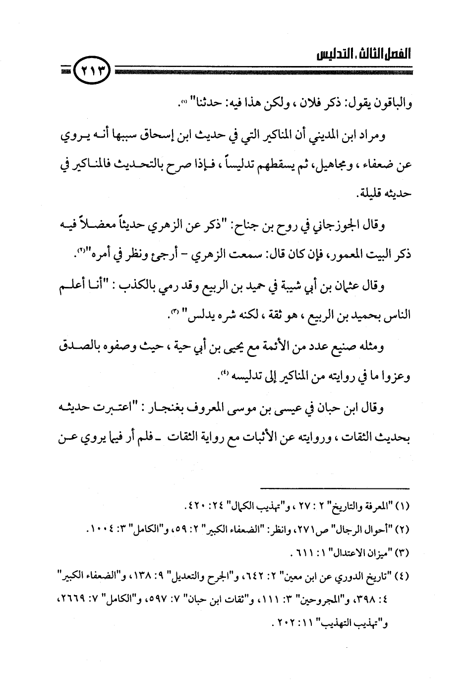 ومراد ابن المديني أن المناكير التي في حديث ابن إسحاق سببها أنه يروي عن ضعفاء، ومجاهيل، ثم يسقطهم تدليساً، فإذا صرح بالتحديث فالمناكير في حديثه قليلة.