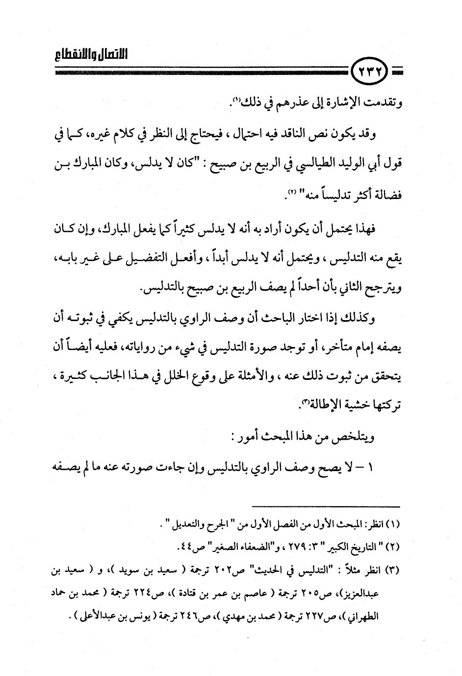 (¬٣) انظر مثلاً: "التدليس في الحديث" ص ٢٠٢ ترجمة (سعيد بن سويد)، و (سعيد بن عبدالعزيز)، ص ٢٠٥ ترجمة (عاصم بن عمر بن قتادة)، ص ٢٢٤ ترجمة (محمد بن حماد الطهراني)، ص ٢٢٧ ترجمة (محمد بن مهدي)، ص ٢٤٦ ترجمة (يونس بن عبدالأعلى).