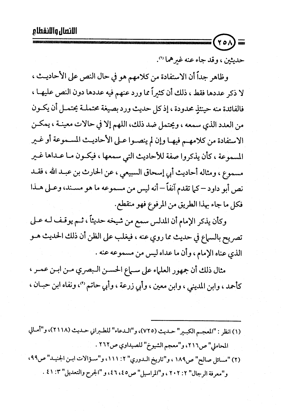 مثال ذلك أن جمهور العلماء على سماع الحسن البصري من ابن عمر، كأحمد، وابن المديني، وابن معين، وأبي زرعة، وأبي حاتم (¬٢)، ونفاه ابن حبان،