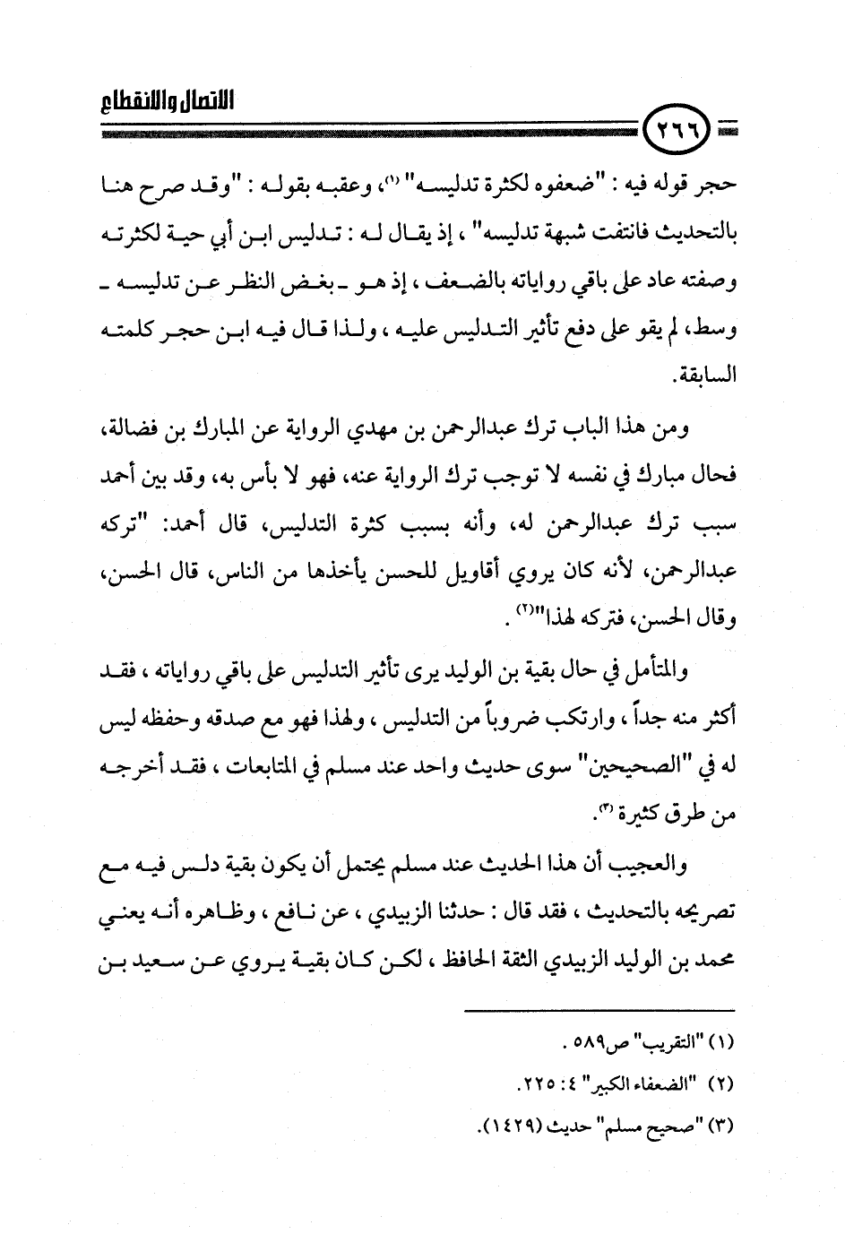والعجيب أن هذا الحديث عند مسلم يحتمل أن يكون بقية دلس فيه مع تصريحه بالتحديث، فقد قال: حدثنا الزبيدي، عن نافع، وظاهره أنه يعني محمد بن الوليد الزبيدي الثقة الحافظ، لكن كان بقية يروي عن سعيد بن