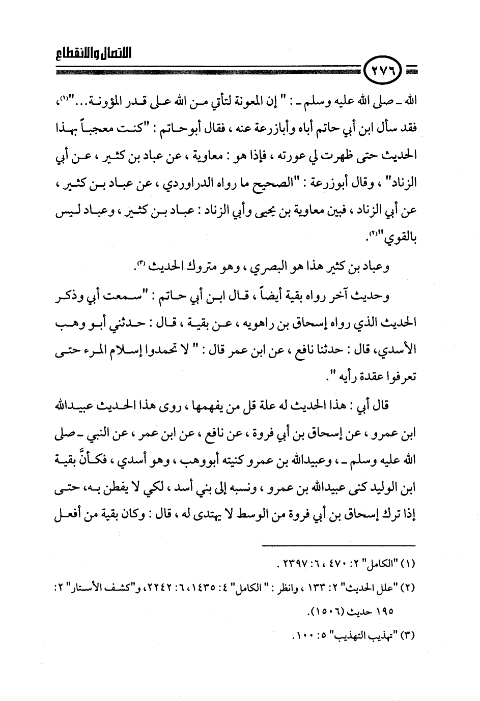 (¬٢) "علل الحديث" ٢: ١٣٣، وانظر: " الكامل" ٤: ١٤٣٥، ٦: ٢٢٤٢، و"كشف الأستار" ٢: ١٩٥ حديث (١٥٠٦).