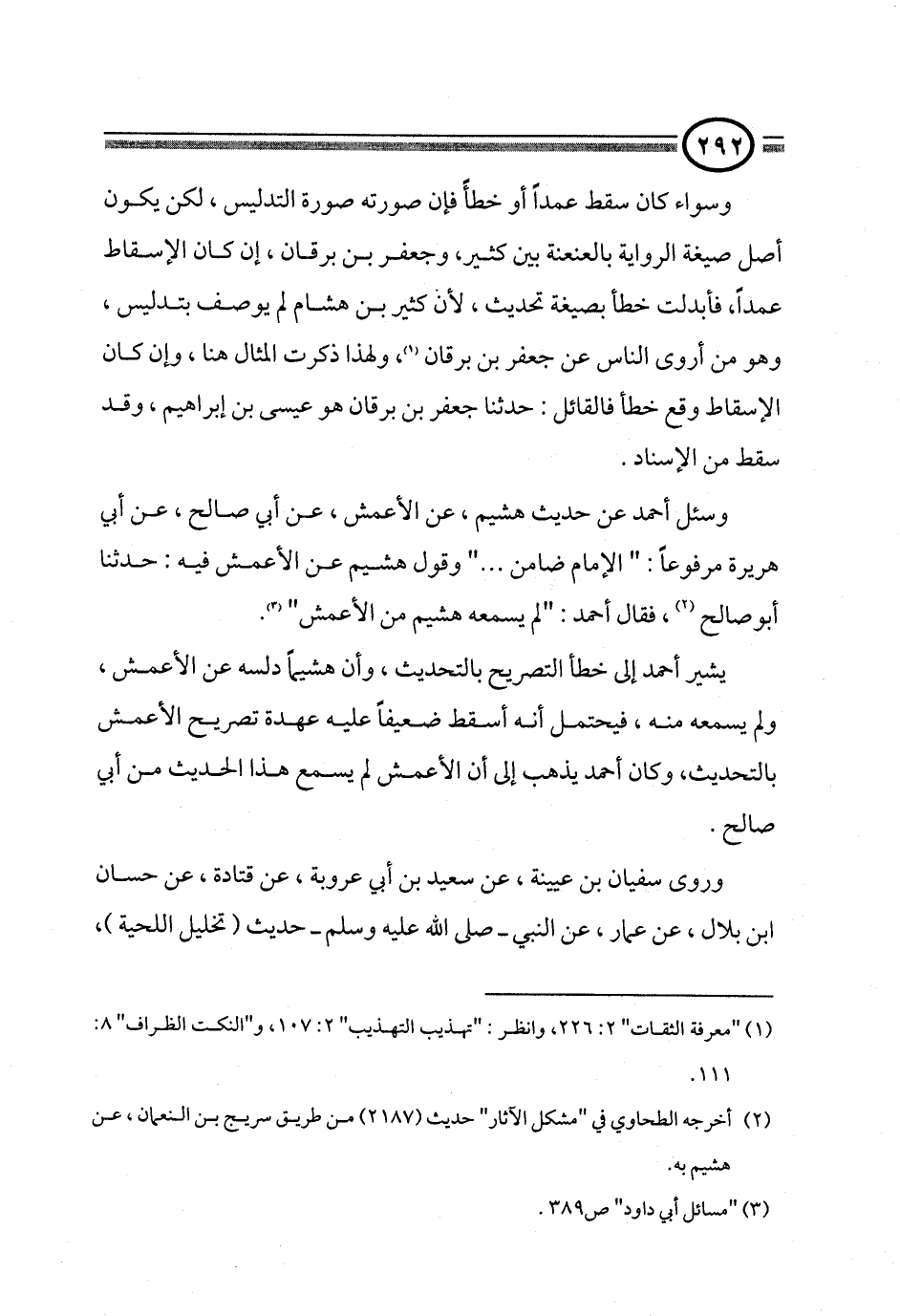 وسواء كان سقط عمداً أو خطأً فإن صورته صورة التدليس، لكن يكون أصل صيغة الرواية بالعنعنة بين كثير، وجعفر بن برقان، إن كان الإسقاط عمداً، فأبدلت خطأ بصيغة تحديث، لأن كثير بن هشام لم يوصف بتدليس، وهو من أروى الناس عن جعفر بن برقان (¬١)، ولهذا ذكرت المثال هنا، وإن كان الإسقاط وقع خطأ فالقائل: حدثنا جعفر بن برقان هو عيسى بن إبراهيم، وقد سقط من الإسناد.
