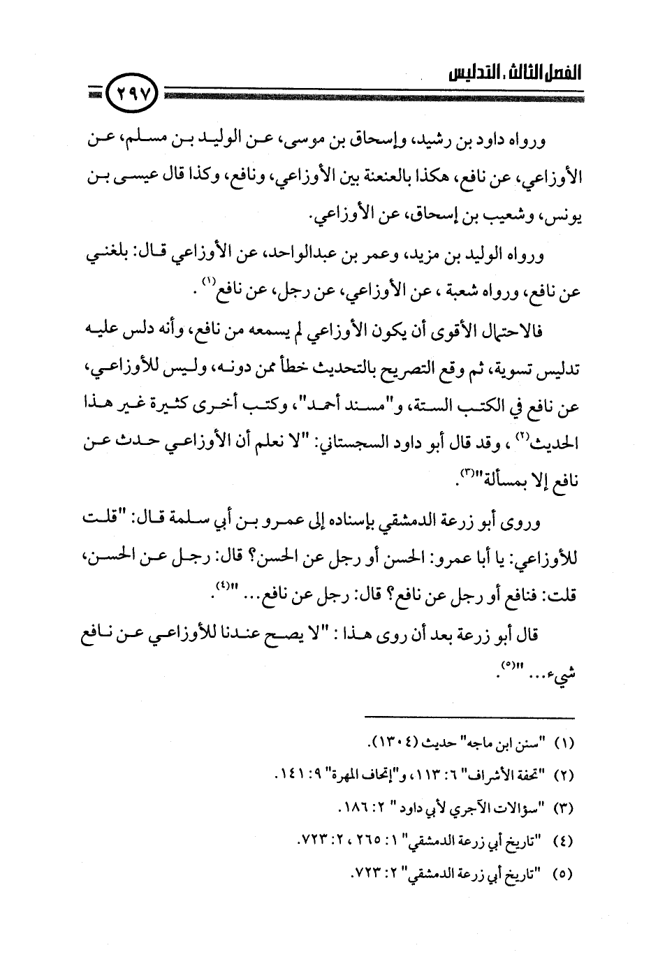 وروى أبو زرعة الدمشقي بإسناده إلى عمرو بن أبي سلمة قال: "قلت للأوزاعي: يا أبا عمرو: الحسن أو رجل عن الحسن؟ قال: رجل عن الحسن، قلت: فنافع أو رجل عن نافع؟ قال: رجل عن نافع ... " (¬٤).