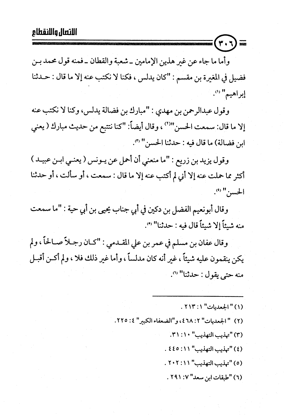 وقول عبدالرحمن بن مهدي: "مبارك بن فضالة يدلس، وكنا لا نكتب عنه إلا ما قال: سمعت الحسن" (¬٢)، وقال أيضاً: "كنا نتتبع من حديث مبارك (يعني ابن فضالة) ما قال فيه: حدثنا الحسن" (¬٣).