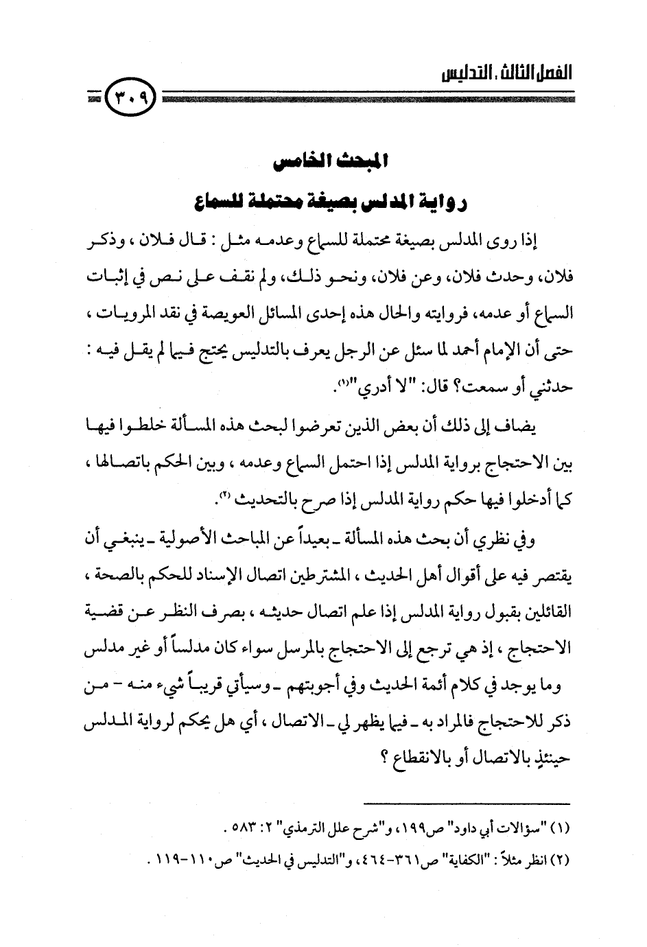 (¬٢) انظر مثلاً: "الكفاية" ص ٣٦١ - ٤٦٤، و"التدليس في الحديث" ص ١١٠ - ١١٩.