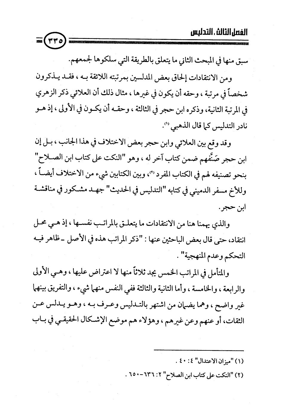 (¬٢) "النكت على كتاب ابن الصلاح" ٢: ٦٣٦ - ٦٥٠.