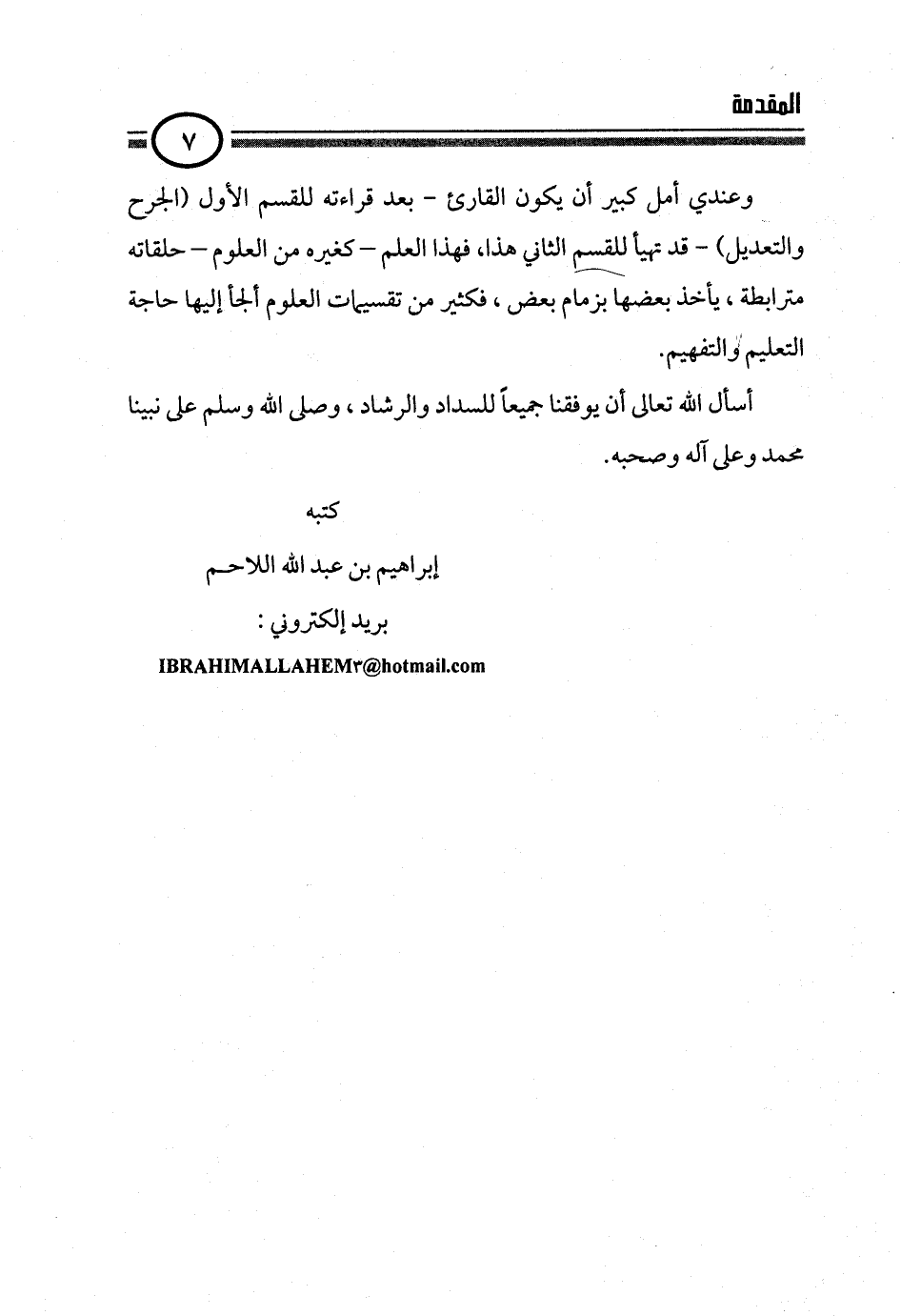 وعندي أمل كبير أن يكون القارئ - بعد قراءته للقسم الأول (الجرح والتعديل) - قد تهيأ للقسم الثاني هذا، فهذا العلم - كغيره من العلوم - حلقاته مترابطة، يأخذ بعضها بزمام بعض، فكثير من تقسيمات العلوم ألجأ إليها حاجة التعليم والتفهيم.