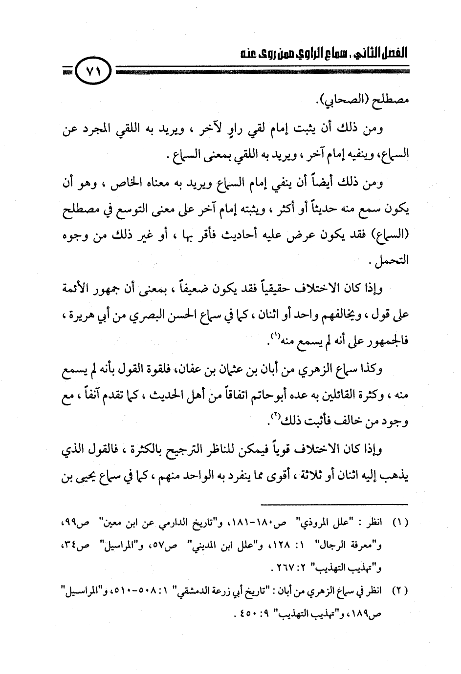 وإذا كان الاختلاف حقيقياً فقد يكون ضعيفاً، بمعنى أن جمهور الأئمة على قول، ويخالفهم واحد أو اثنان، كما في سماع الحسن البصري من أبي هريرة، فالجمهور على أنه لم يسمع منه (¬١).