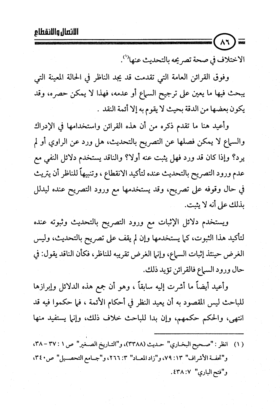 وأعيد هنا ما تقدم ذكره من أن هذه القرائن واستخدامها في الإدراك والسماع لا يمكن فصلها عن التصريح بالتحديث، هل ورد عن الراوي أو لم يرد؟ وإذا كان قد ورد فهل يثبت عنه أولا؟ والناقد يستخدم دلائل النفي مع عدم ورود التصريح بالتحديث عنده لتأكيد الانقطاع، وتنبيهاً للناظر أن يتريث في حال وقوفه على تصريح، وقد يستخدمها مع ورود التصريح عنده ليدلل بذلك على أنه لا يثبت.