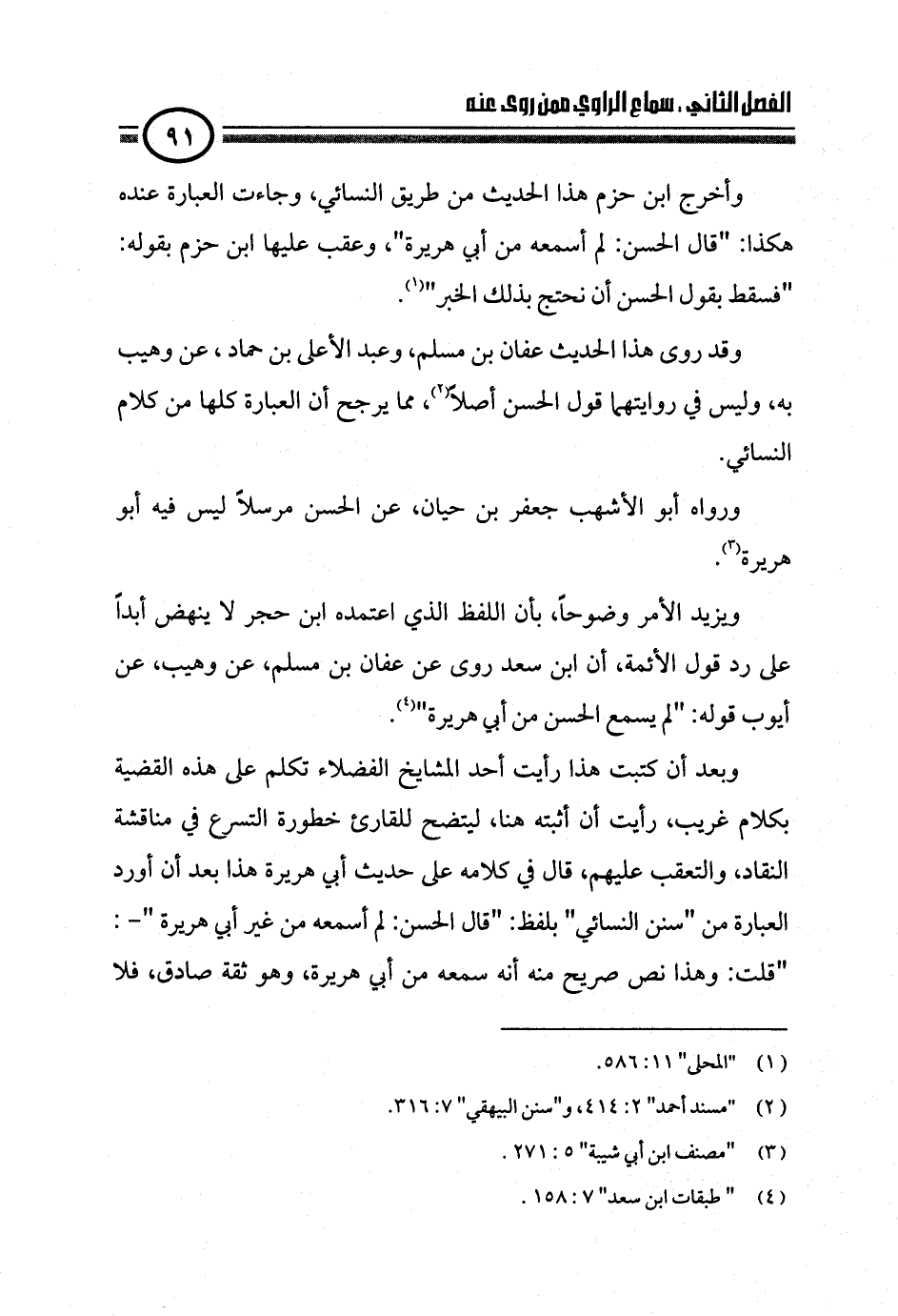 ويزيد الأمر وضوحاً، بأن اللفظ الذي اعتمده ابن حجر لا ينهض أبداً على رد قول الأئمة، أن ابن سعد روى عن عفان بن مسلم، عن وهيب، عن أيوب قوله: "لم يسمع الحسن من أبي هريرة" (¬٤).