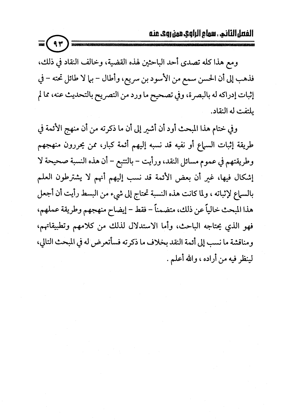 وفي ختام هذا المبحث أود أن أشير إلى أن ما ذكرته من أن منهج الأئمة في طريقة إثبات السماع أو نفيه قد نسبه إليهم أئمة كبار، ممن يحررون منهجهم وطريقتهم في عموم مسائل النقد، ورأيت - بالتتبع - أن هذه النسبة صحيحة لا إشكال فيها، غير أن بعض الأئمة قد نسب إليهم أنهم لا يشترطون العلم بالسماع لإثباته، ولما كانت هذه النسبة تحتاج إلى شيء من البسط رأيت أن أجعل هذا المبحث خالياً عن ذلك، متضمناً - فقط - إيضاح منهجهم وطريقة عملهم، فهو الذي يحتاجه الباحث، وأما الاستدلال لذلك من كلامهم وتطبيقاتهم، ومناقشة ما نسب إلى أئمة النقد بخلاف ما ذكرته فسأتعرض له في المبحث التالي، لينظر فيه من أراده، والله أعلم.