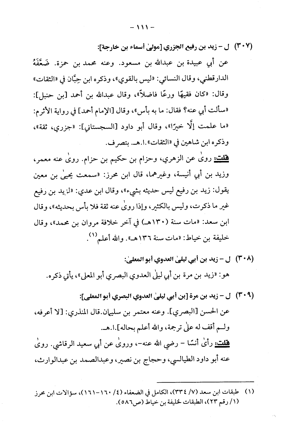 (307) ل- زيد بن رفيع الجزري [مولى أسماء بن خارجة]: