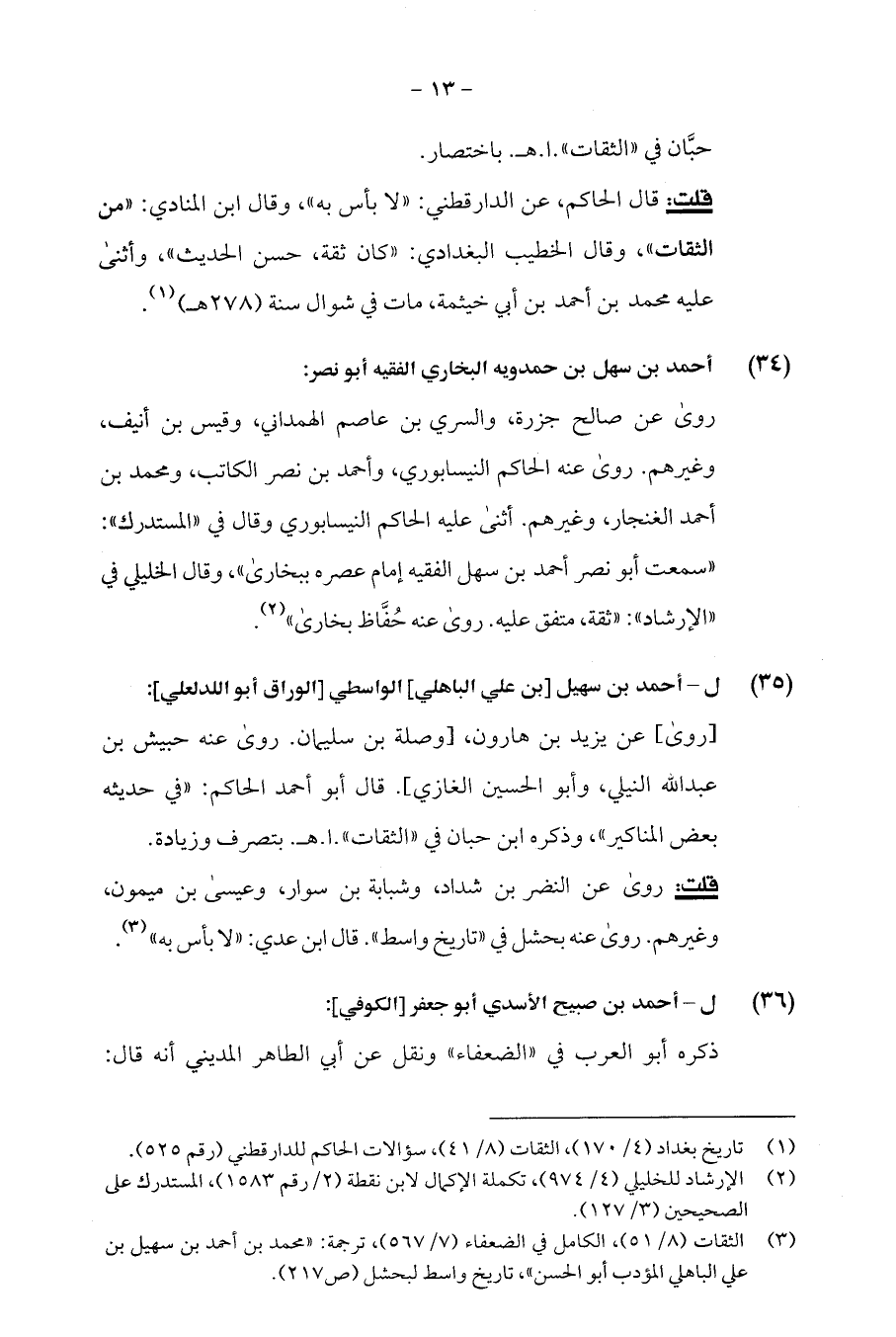 (¬3) الثقات (8/ 51)، الكامل في الضعفاء (7/ 567)، ترجمة: "محمد بن أحمد بن سهيل بن علي الباهلي المؤدب أبو الحسن"، تاريخ واسط لبحشل (ص 217).