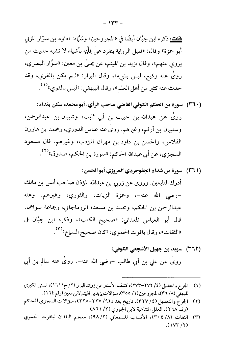 (360) سورة بن الحكم الكوفي القاضي صاحب الرأي، أبو محمد، سكن بغداد: