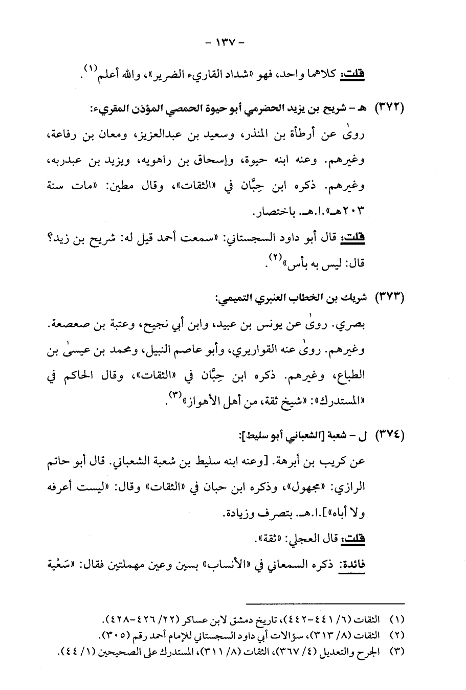 (¬3) الجرح والتعديل (4/ 367)، الثقات (8/ 311)، المستدرك على الصحيحين (1/ 44).