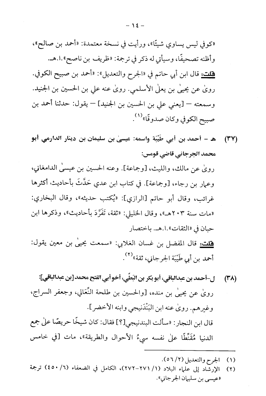 (¬2) الإرشاد إلى علماء البلاد (1/ 271 - 272)، الكامل في الضعفاء (6/ 450) ترجمة "عيسى بن سليمان الجرجاني".