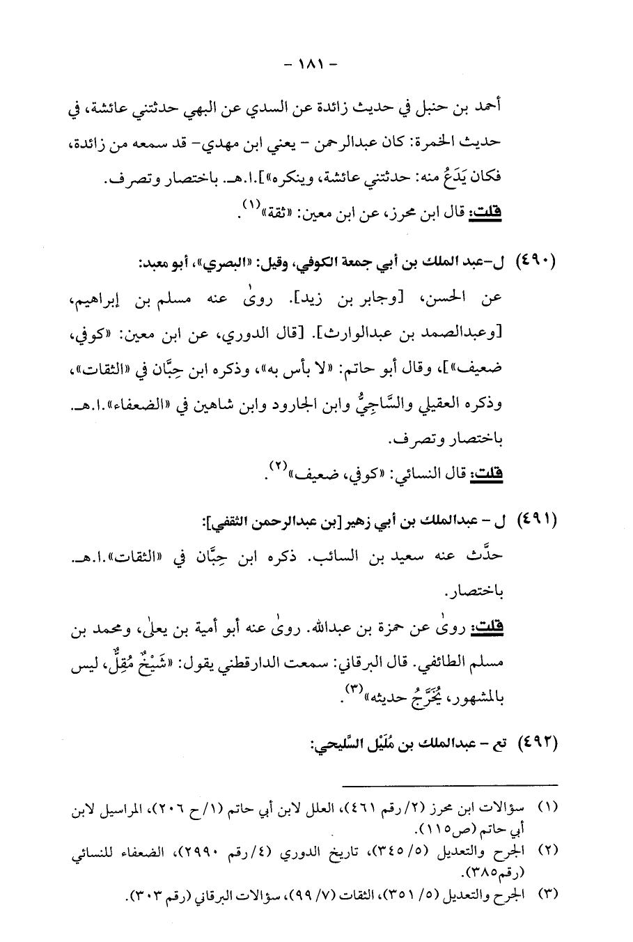 (¬2) الجرح والتعديل (5/ 345)، تاريخ الدوري (4/ رقم 2990)، الضعفاء للنسائي (رقم 385).